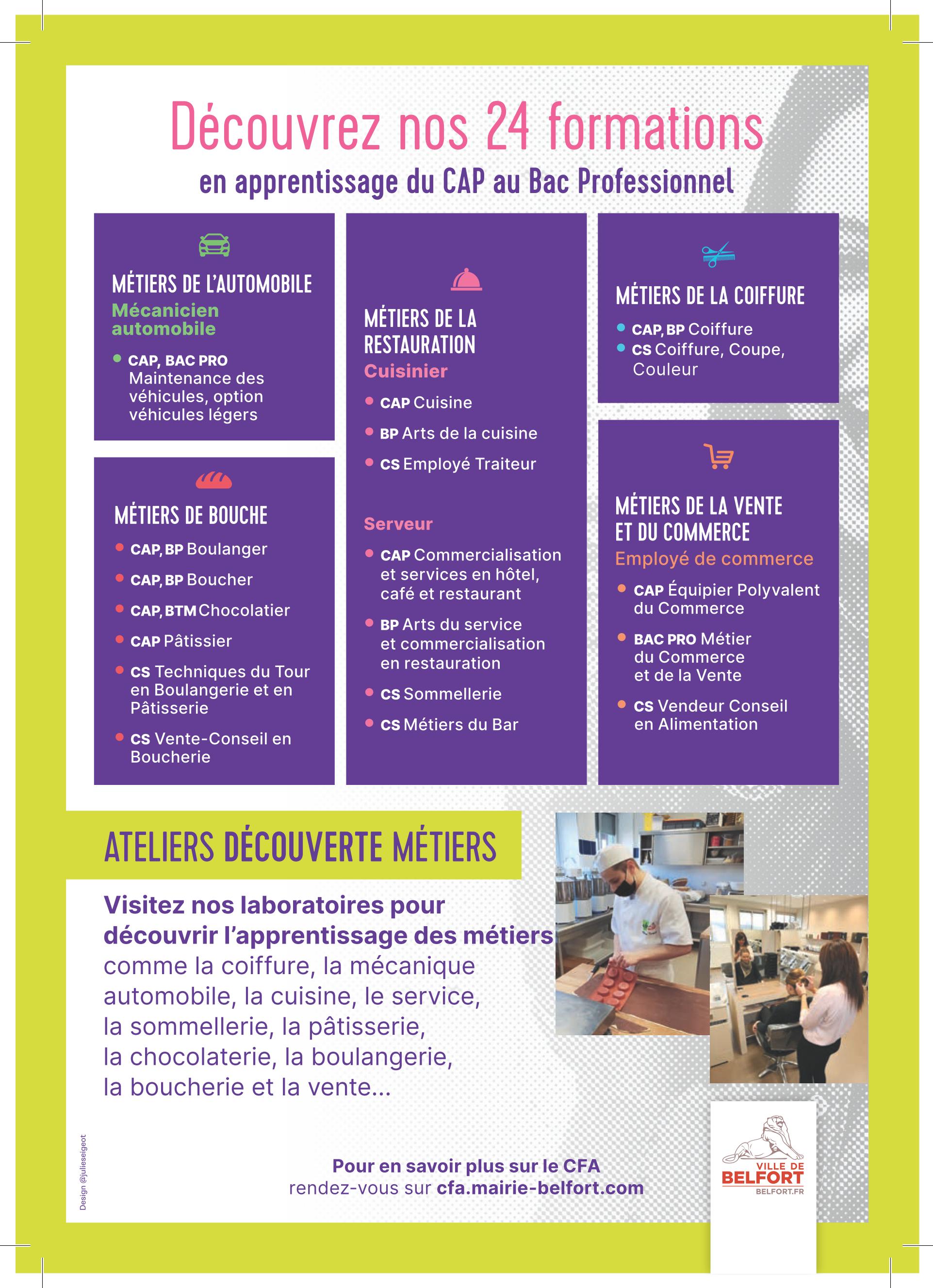 En nous rendant visite, les jeunes et leurs familles ont pu découvrir un large éventail de parcours par apprentissage dans nos 24 formations professionnelles :