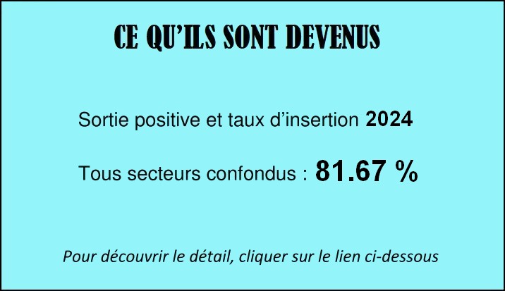 Remarque : Quatre formations, trop récentes, ne sont pas encore mentionnées sur le site InserJeunes. Elles le seront prochainement :