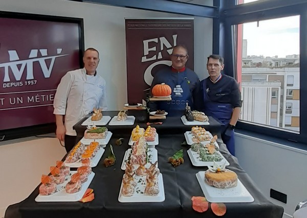Laurent MICHAUD, enseignant en Boucherie, est allé se former le 24/10/22 à Paris, à l’ENSMV, sur les préparations bouchères festives d'automne avec Sébastien COIRIER MOF 2015.