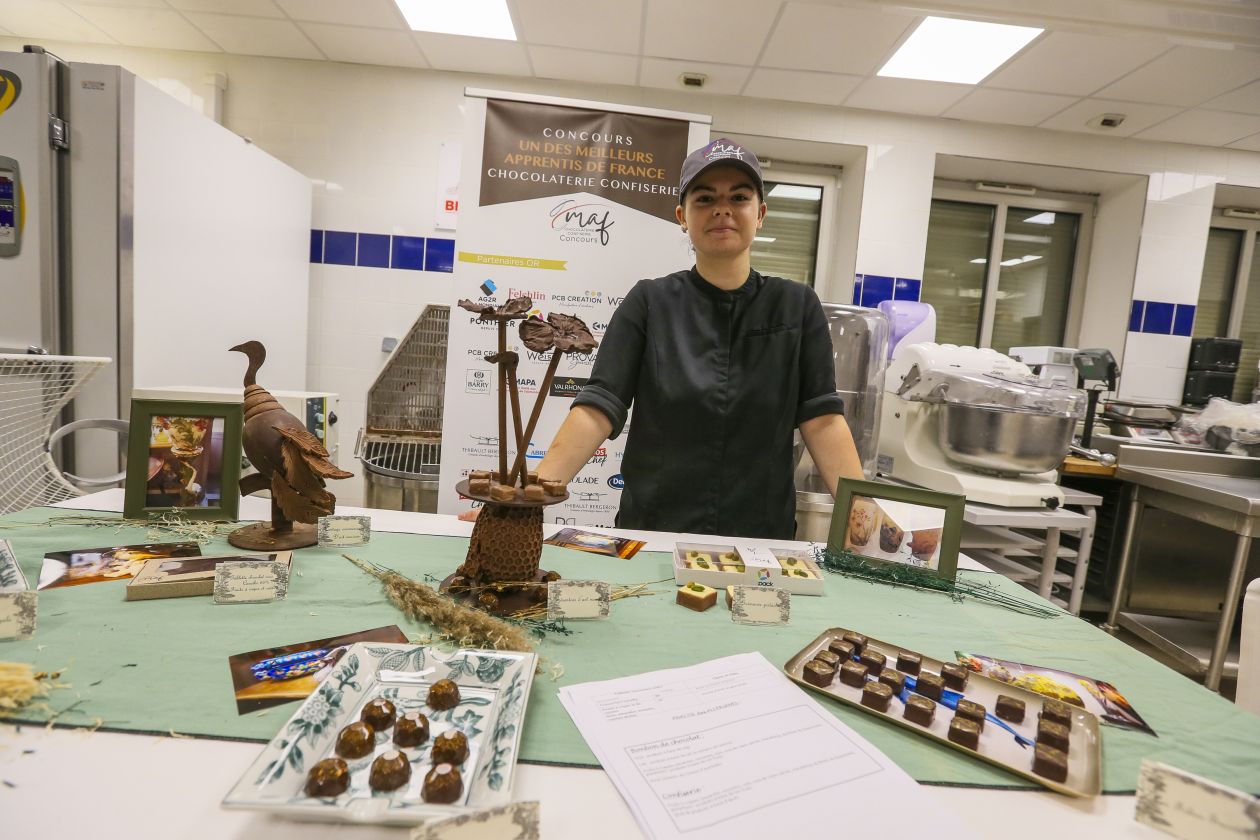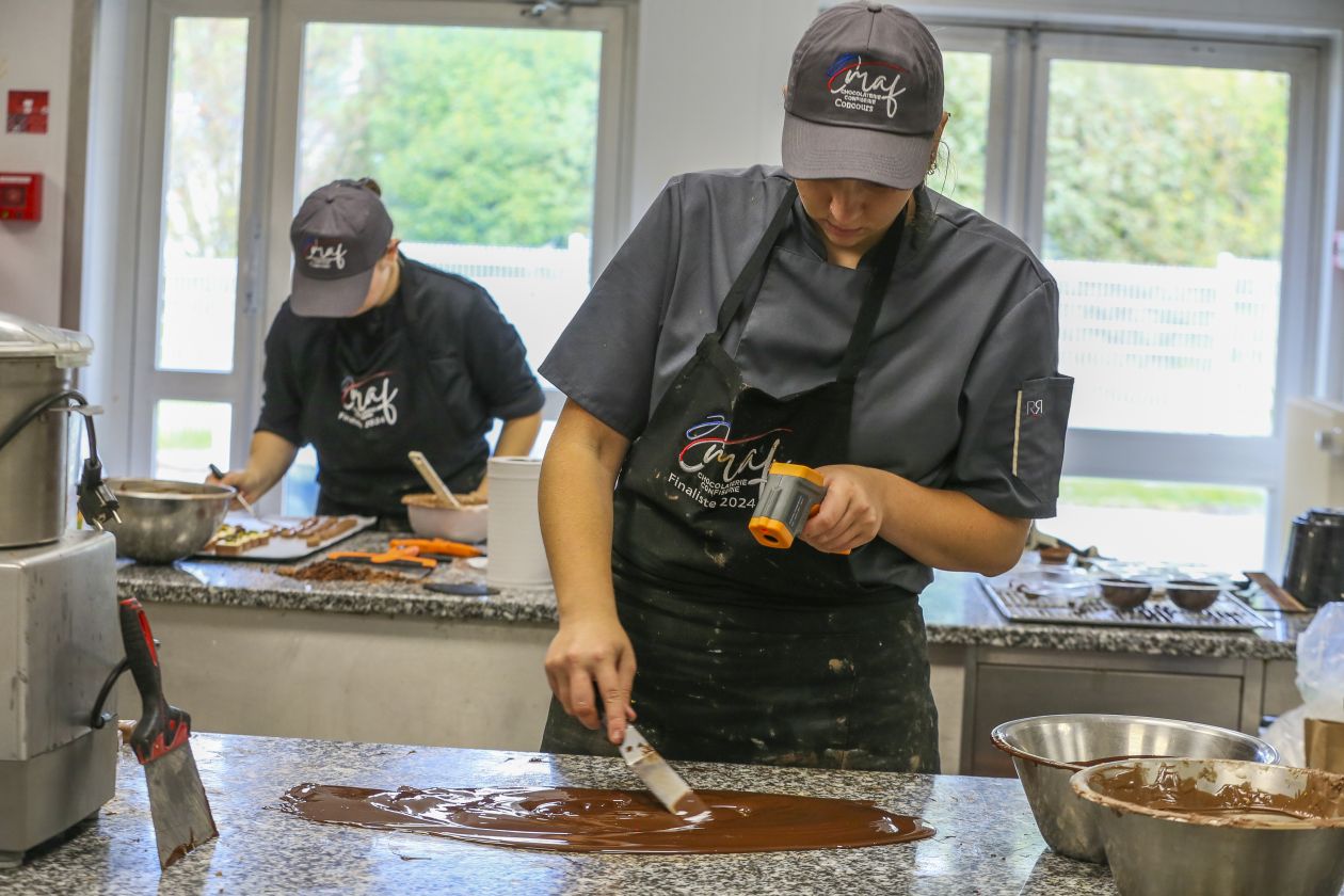 Cinq candidats ont passé ce lundi l'épreuve de la sélection régionale du concours du meilleur apprenti chocolatier de France au CFA Jackie-Drouet à Belfort. Au programme, à réaliser en sept heures : des bonbons praliné-vanille, des bonbons moulés avec insert semi-liquide, des guimauves à la pistache, trois tablettes avec inclusions, deux sujets moulés (commercialisables), une pièce vitrine, et une spécialité libre.